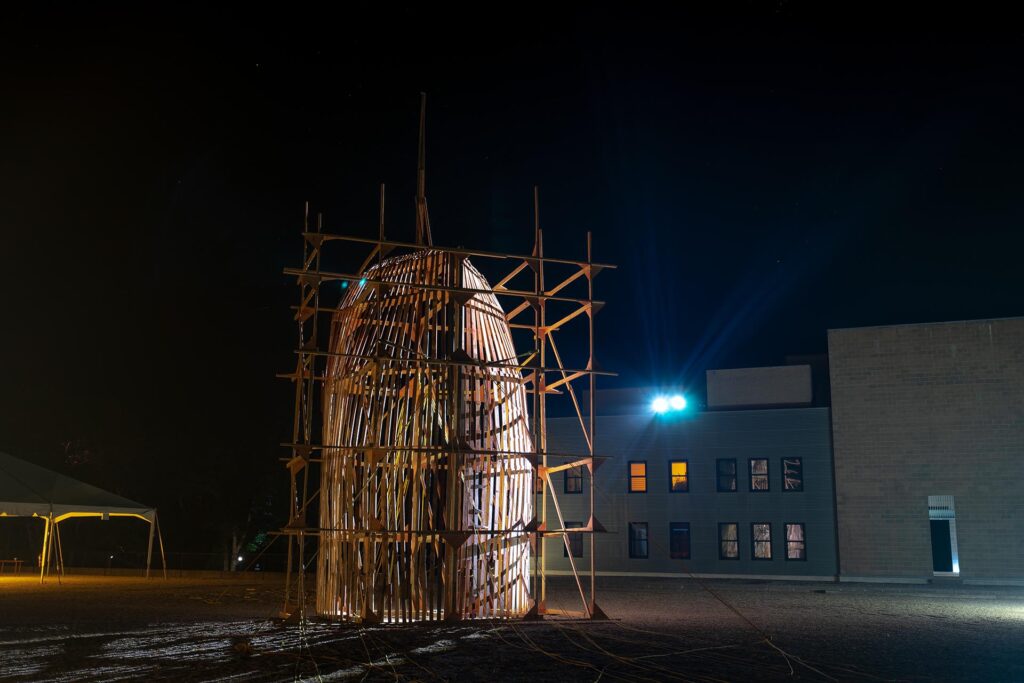 I staged this performance at the Watermill Center (Long Island, New York) in the summer of 2022, right as the covid travel restrictions were beginning to be eased. Sag Harbor is a port town in Southampton (Long Island) that flourished through whaling. The design of the structure used in the performance is based on the whaling ship Manhattan, which departed from Sag Harbor in 1843.
