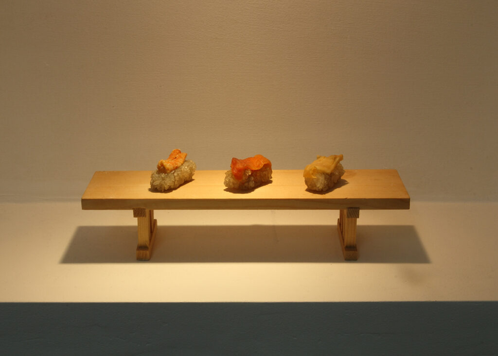 当然のように、彼らの手にかかると「わび・さび」や「伝統」「和心」といったモチーフは完全に捨て去られ、日本が独自に育んできた感性やセンス、美意識といったものも全て排除されしまっており、作品の題材として選んだ、寿司、浅草、忍者、相撲・・・、といった「日本らしい」と呼ばれるものを、日本の伝統技術などを使って表現するのではなく、とびっきりポップでキッチュに表現します。