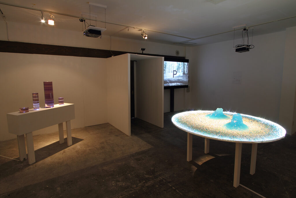 Nishimura has mainly produced sculptural works using short-standing materials that go away along with consumption, such as bathwater additives and carpet cleaners. Focusing on the themes of “weathering” and “sublimation,” the exhibition features a three-dimensional work “Monument” that uses air freshener gel shaped in the form of Monument Valley in the United States.